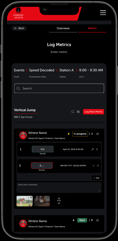 1% Athlete: Collected input from founders, coaches, and stakeholders on dashboard structure, metric entry flows, and collaboration features.